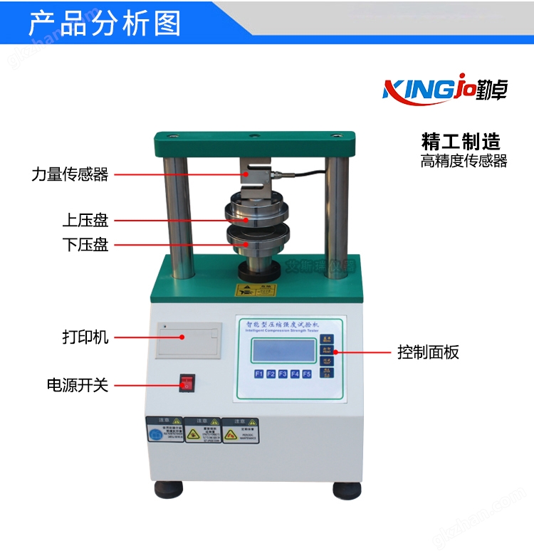 是纸板/纸张抗压强度性能检测的基本仪器(即纸包装检测仪器),配备各种夹具附件可测试原纸之环压强度、纸板之平压强度、边压强度、胶合强度等试验,以便纸品生产企业控制生产成本和提高产品质量。其各项性能参数和技术指标符合相关国家标准规定。