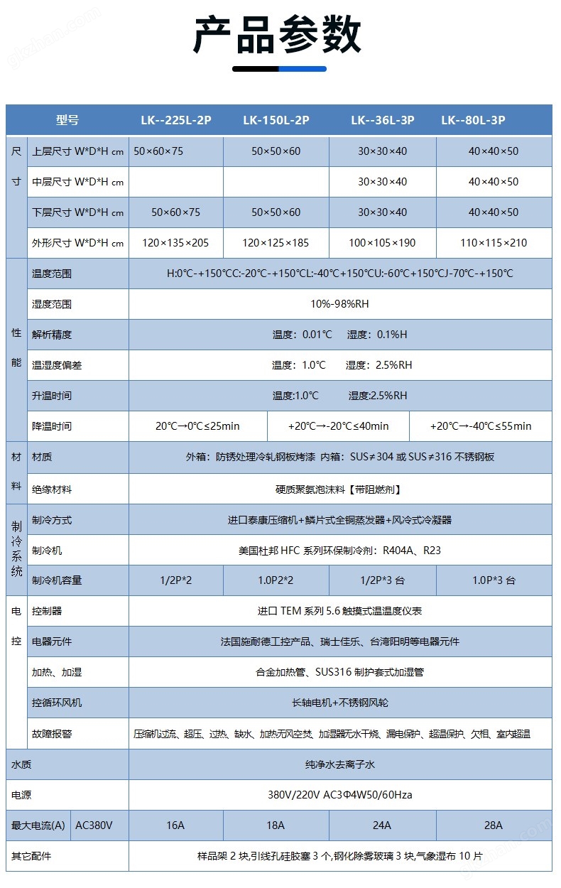 二、上下层恒温恒湿试验箱厂家技术参数: